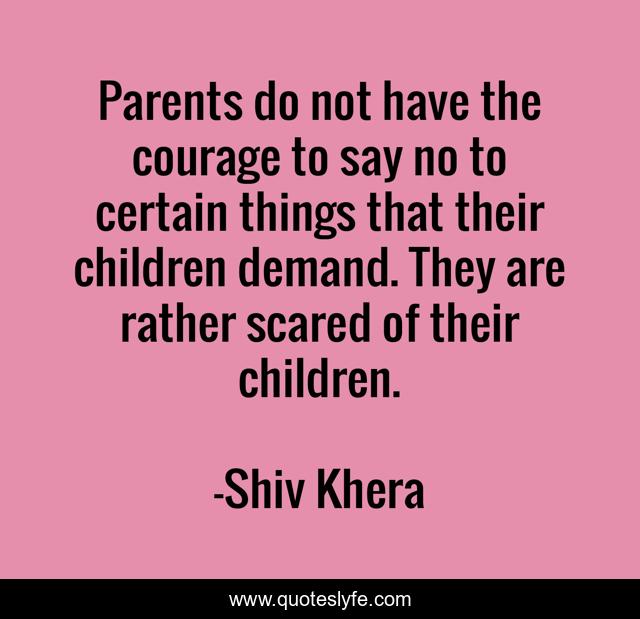 This page presents the quote "Parents do not have the courage to say no to certain things that their children demand. They are rather scared of their children.". Author of this quote is Shiv Khera. This quote is about parents, children,.