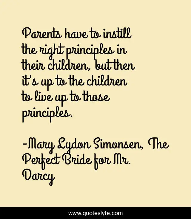 "Mary Lydon Simonsen, The Perfect Bride for Mr. Darcy Quotes." Quoteslyfe.com, 2025. Fri. 05 Dec. 2025. <https://www.quoteslyfe.com/quote/Parents-have-to-instill-the-right-principles-99356>.