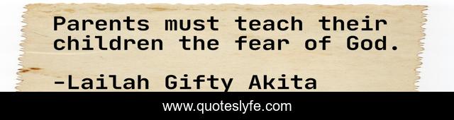 This page presents the quote "Parents must teach their children the fear of God.". Author of this quote is Lailah Gifty Akita. This quote is about christian, parent, god, fear-of-god, parenting, bible-study, teach, godly,.