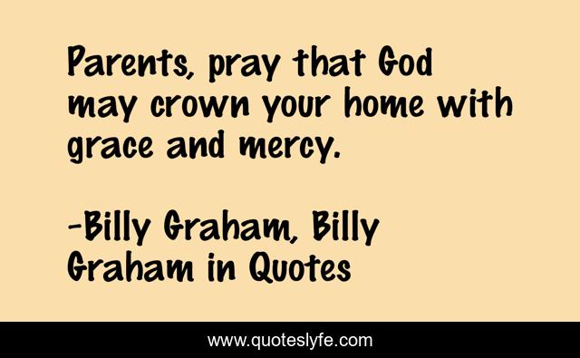 This page presents the quote "Parents, pray that God may crown your home with grace and mercy.". Author of this quote is Billy Graham, Billy Graham in Quotes. This quote is about parents, billy-graham,.