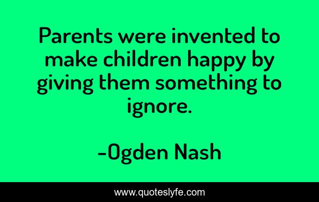 This page presents the quote "Parents were invented to make children happy by giving them something to ignore.". Author of this quote is Ogden Nash. This quote is about parents, children, happy,.