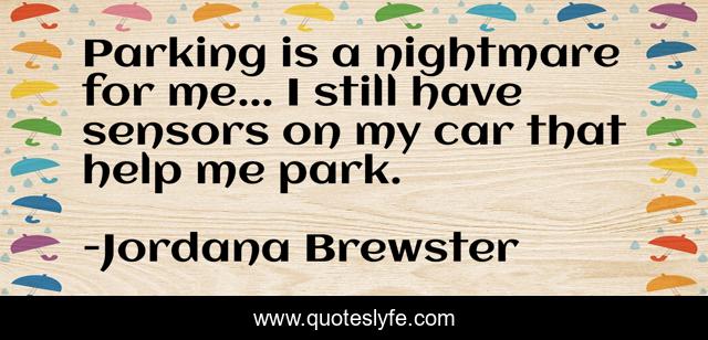This page presents the quote "Parking is a nightmare for me... I still have sensors on my car that help me park.". Author of this quote is Jordana Brewster. This quote is about me, park, help,.
