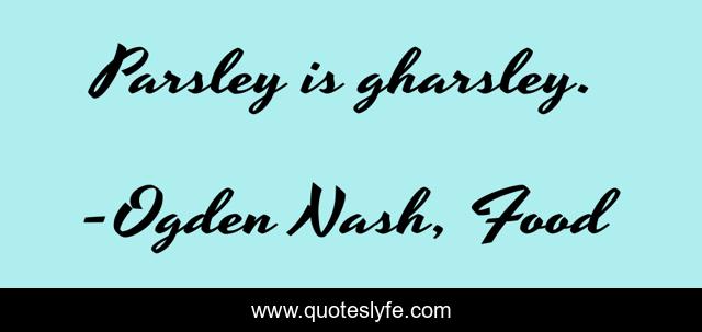 "Ogden Nash, Food Quotes." Quoteslyfe.com, 2025. Tue. 09 Dec. 2025. <https://www.quoteslyfe.com/quote/Parsley-is-gharsley-167912>.