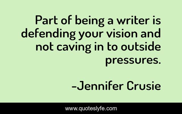 This page presents the quote "Part of being a writer is defending your vision and not caving in to outside pressures.". Author of this quote is Jennifer Crusie. .