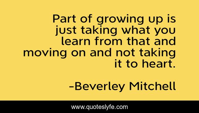 This page presents the quote "Part of growing up is just taking what you learn from that and moving on and not taking it to heart.". Author of this quote is Beverley Mitchell. This quote is about growing up, heart, moving,.