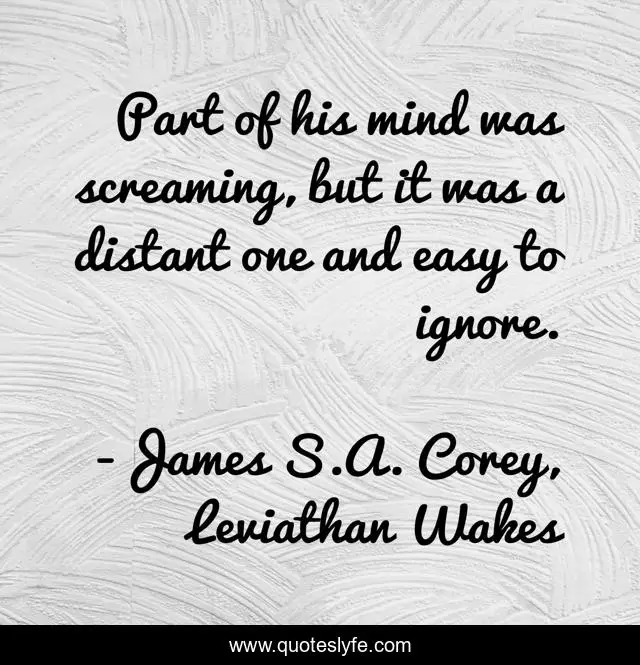 This page presents the quote "Part of his mind was screaming, but it was a distant one and easy to ignore.". Author of this quote is James S.A. Corey, Leviathan Wakes. This quote is about mind, horror, pain, scream,.