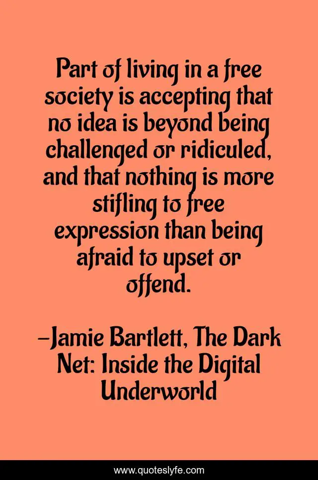 "Jamie Bartlett, The Dark Net: Inside the Digital Underworld Quotes." Quoteslyfe.com, 2025. Sat. 06 Dec. 2025. <https://www.quoteslyfe.com/quote/Part-of-living-in-a-free-society-243464>.