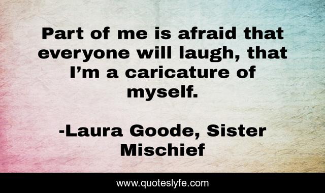 This page presents the quote "Part of me is afraid that everyone will laugh, that I’m a caricature of myself.". Author of this quote is Laura Goode, Sister Mischief. This quote is about young-adult, growing-up,.