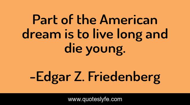 This page presents the quote "Part of the American dream is to live long and die young.". Author of this quote is Edgar Z. Friedenberg. This quote is about america, americans,.