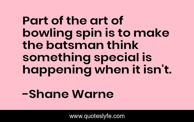 This page presents the quote "Part of the art of bowling spin is to make the batsman think something special is happening when it isn't.". Author of this quote is Shane Warne. This quote is about bowling, cricket, sport, deception, spin-bowling,.