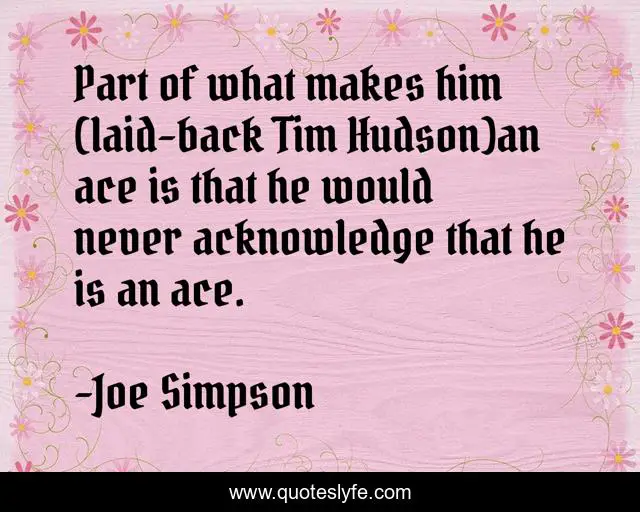 This page presents the quote "Part of what makes him (laid-back Tim Hudson)an ace is that he would never acknowledge that he is an ace.". Author of this quote is Joe Simpson. This quote is about servant-leader, humility,.