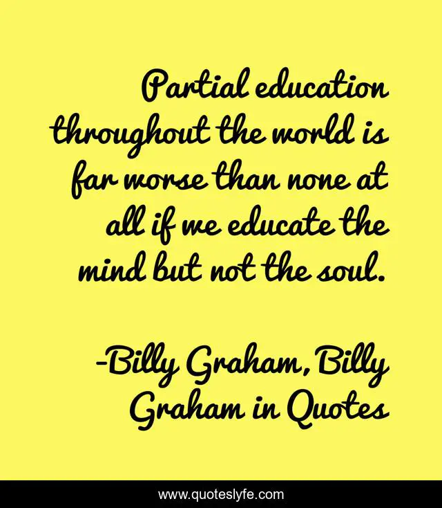 "Billy Graham, Billy Graham in Quotes Quotes." Quoteslyfe.com, 2025. Sat. 06 Dec. 2025. <https://www.quoteslyfe.com/quote/Partial-education-throughout-the-world-is-far-152154>.