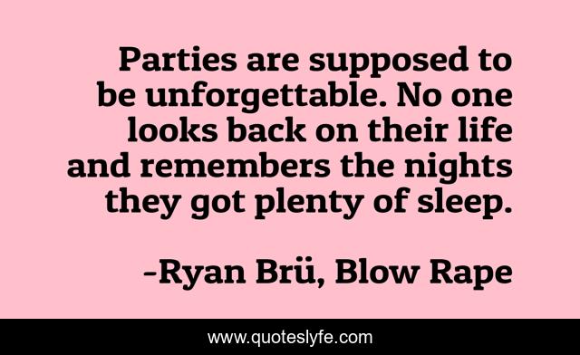 "Ryan Brü, Blow Rape Quotes." Quoteslyfe.com, 2025. Sat. 06 Dec. 2025. <https://www.quoteslyfe.com/quote/Parties-are-supposed-to-be-unforgettable-No-237952>.