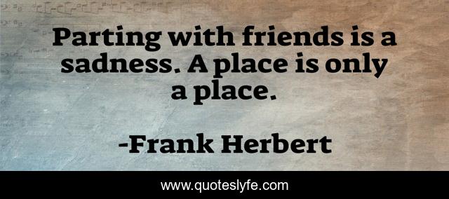 This page presents the quote "Parting with friends is a sadness. A place is only a place.". Author of this quote is Frank Herbert. This quote is about friends, parting,.