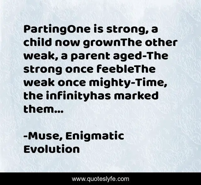 "Muse, Enigmatic Evolution Quotes." Quoteslyfe.com, 2025. Mon. 08 Dec. 2025. <https://www.quoteslyfe.com/quote/PartingOne-is-strong-a-child-now-grownThe-86536>.