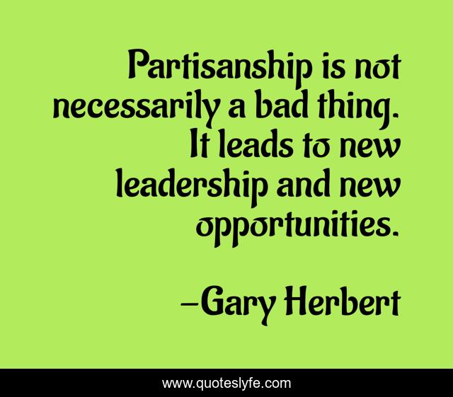 This page presents the quote "Partisanship is not necessarily a bad thing. It leads to new leadership and new opportunities.". Author of this quote is Gary Herbert. This quote is about new, bad, opportunities,.