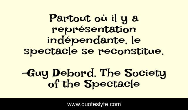 "Guy Debord, The Society of the Spectacle Quotes." Quoteslyfe.com, 2025. Fri. 05 Dec. 2025. <https://www.quoteslyfe.com/quote/Partout-o-il-y-a-repr-sentation-8526>.