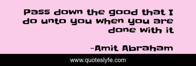 This page presents the quote "Pass down the good that I do unto you when you are done with it". Author of this quote is Amit Abraham. This quote is about pass-down, good,.