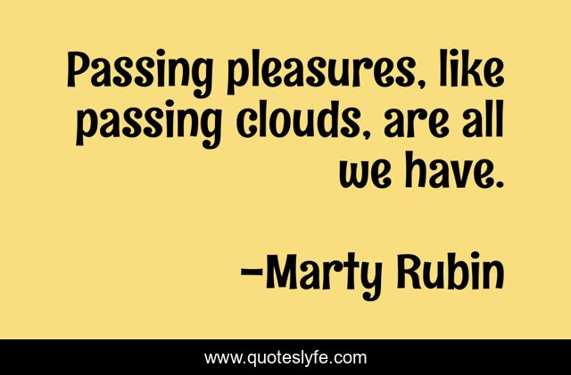 This page presents the quote "Passing pleasures, like passing clouds, are all we have.". Author of this quote is Marty Rubin. This quote is about transience, pleasure, impermanence,.