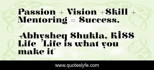 "Abhysheq Shukla, KISS Life "Life is what you make it" Quotes." Quoteslyfe.com, 2025. Mon. 08 Dec. 2025. <https://www.quoteslyfe.com/quote/Passion-Vision-Skill-Mentoring-Success-81567>.