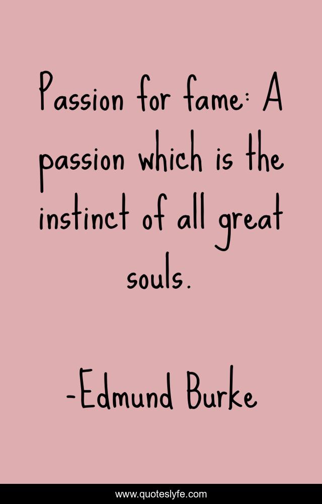 This page presents the quote "Passion for fame: A passion which is the instinct of all great souls.". Author of this quote is Edmund Burke. This quote is about great, passion, fame,.