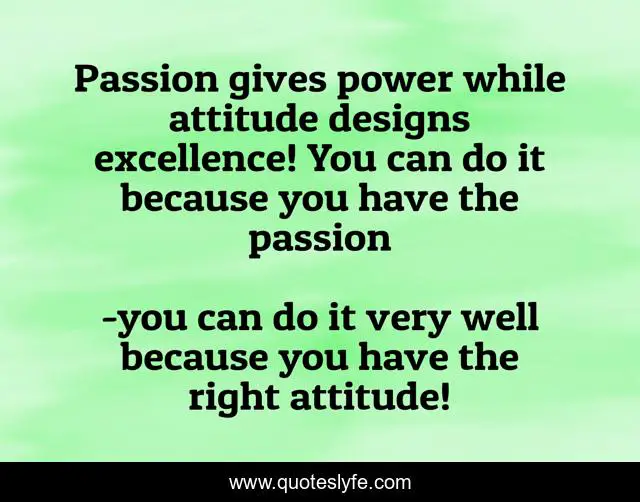 "you can do it very well because you have the right attitude! Quotes." Quoteslyfe.com, 2025. Fri. 05 Dec. 2025. <https://www.quoteslyfe.com/quote/Passion-gives-power-while-attitude-designs-excellence-88704>.