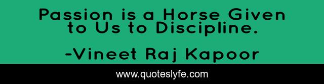 This page presents the quote "Passion is a Horse Given to Us to Discipline.". Author of this quote is Vineet Raj Kapoor. This quote is about discipline, living, horse, success, freedom, motivational, life, passion, optimistic,.