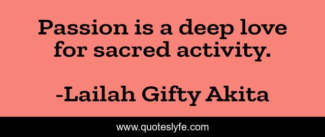 This page presents the quote "Passion is a deep love for sacred activity.". Author of this quote is Lailah Gifty Akita. This quote is about motivation, love, talented, skills, advice, hobbies, wise-words, writing, gifts,.