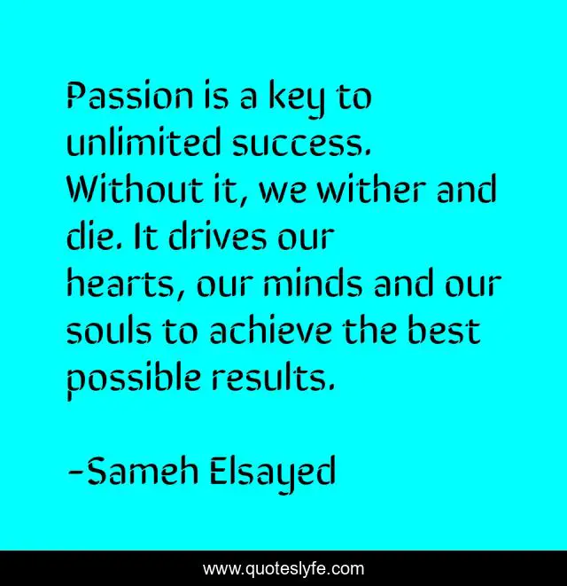 "Sameh Elsayed Quotes." Quoteslyfe.com, 2025. Mon. 08 Dec. 2025. <https://www.quoteslyfe.com/quote/Passion-is-a-key-to-unlimited-success-63773>.