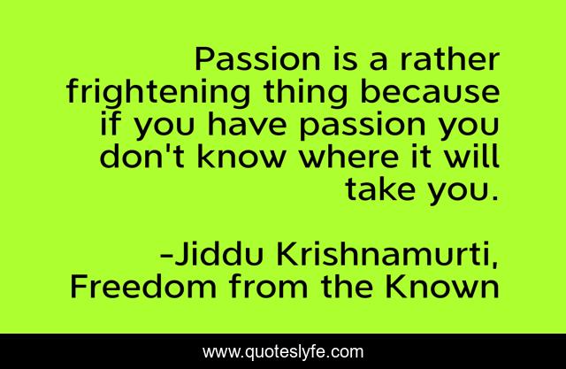 "Jiddu Krishnamurti, Freedom from the Known Quotes." Quoteslyfe.com, 2025. Sun. 07 Dec. 2025. <https://www.quoteslyfe.com/quote/Passion-is-a-rather-frightening-thing-because-92300>.