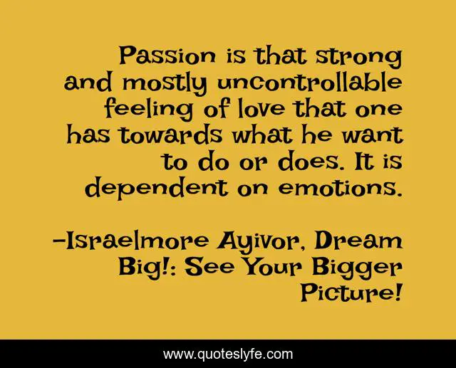 "Israelmore Ayivor, Dream Big!: See Your Bigger Picture! Quotes." Quoteslyfe.com, 2025. Fri. 05 Dec. 2025. <https://www.quoteslyfe.com/quote/Passion-is-that-strong-and-mostly-uncontrollable-93016>.