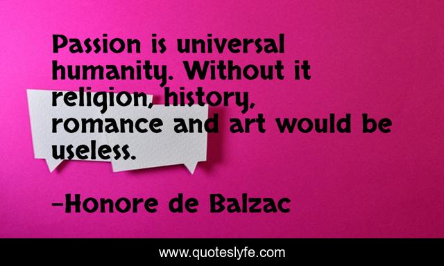 This page presents the quote "Passion is universal humanity. Without it religion, history, romance and art would be useless.". Author of this quote is Honore de Balzac. This quote is about art, passion, history,.