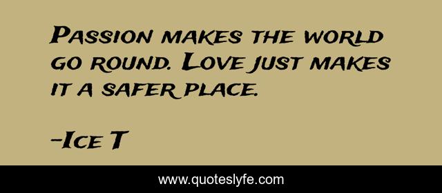 This page presents the quote "Passion makes the world go round. Love just makes it a safer place.". Author of this quote is Ice T. .