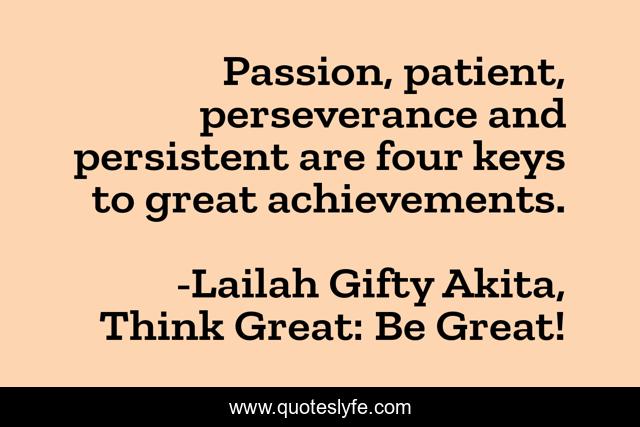 "Lailah Gifty Akita, Think Great: Be Great! Quotes." Quoteslyfe.com, 2025. Sat. 06 Dec. 2025. <https://www.quoteslyfe.com/quote/Passion-patient-perseverance-and-persistent-are-four-91815>.