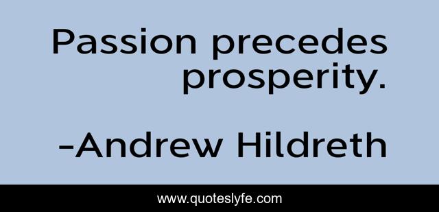This page presents the quote "Passion precedes prosperity.". Author of this quote is Andrew Hildreth. This quote is about prosperity, passion,.