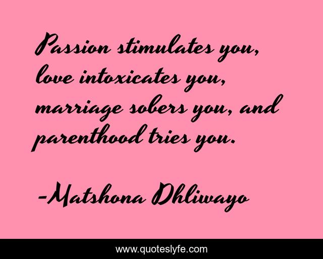 "Matshona Dhliwayo Quotes." Quoteslyfe.com, 2025. Mon. 08 Dec. 2025. <https://www.quoteslyfe.com/quote/Passion-stimulates-you-love-intoxicates-you-marriage-49628>.
