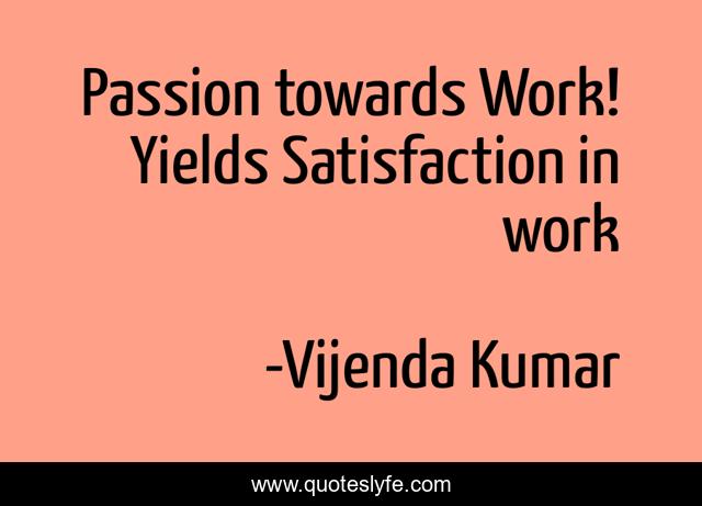 This page presents the quote "Passion towards Work! Yields Satisfaction in work". Author of this quote is Vijenda Kumar. .