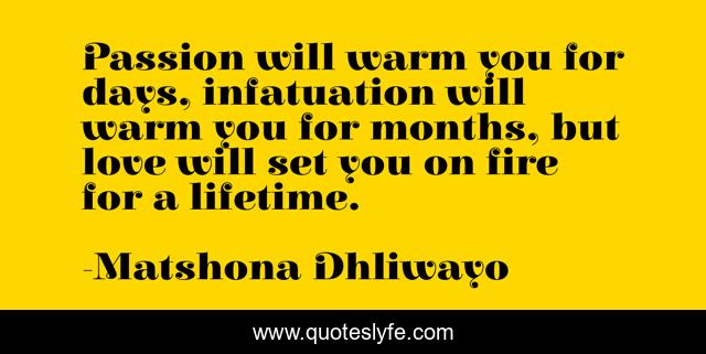 "Matshona Dhliwayo Quotes." Quoteslyfe.com, 2025. Fri. 05 Dec. 2025. <https://www.quoteslyfe.com/quote/Passion-will-warm-you-for-days-infatuation-49413>.