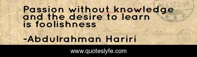 This page presents the quote "Passion without knowledge and the desire to learn is foolishness". Author of this quote is Abdulrahman Hariri. This quote is about enthusiasm, startup, inspirational, entrepreneurship,.