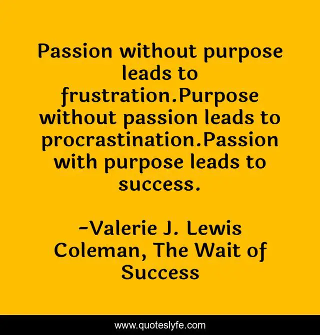 "Valerie J. Lewis Coleman, The Wait of Success Quotes." Quoteslyfe.com, 2025. Fri. 05 Dec. 2025. <https://www.quoteslyfe.com/quote/Passion-without-purpose-leads-to-frustration-Purpose-15307>.