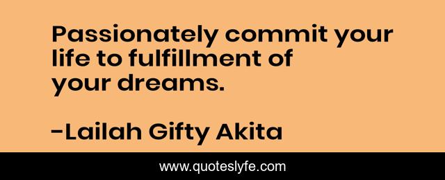 This page presents the quote "Passionately commit your life to fulfillment of your dreams.". Author of this quote is Lailah Gifty Akita. This quote is about success, commitment, passion, enthusiasm, determination, never-give-up, dreams, you-can,.