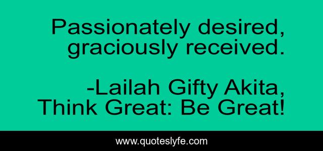 "Lailah Gifty Akita, Think Great: Be Great! Quotes." Quoteslyfe.com, 2025. Sat. 06 Dec. 2025. <https://www.quoteslyfe.com/quote/Passionately-desired-graciously-received-208379>.