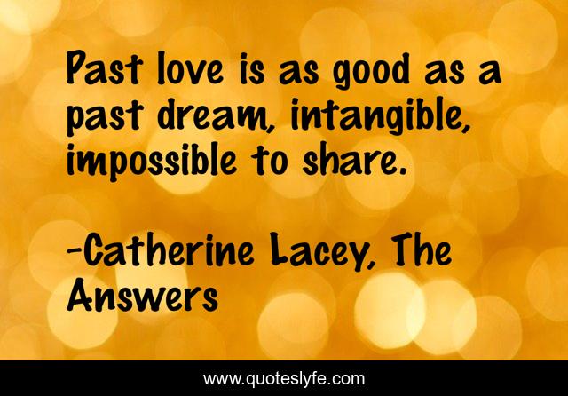 This page presents the quote "Past love is as good as a past dream, intangible, impossible to share.". Author of this quote is Catherine Lacey, The Answers. This quote is about simile, love, unexplainable, past-love, catherine-lacey, the-answers, inexpressible, intangible, dreams,.