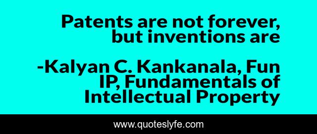 This page presents the quote "Patents are not forever, but inventions are". Author of this quote is Kalyan C. Kankanala, Fun IP, Fundamentals of Intellectual Property. This quote is about intellectual-property, india, patents, inventions,.