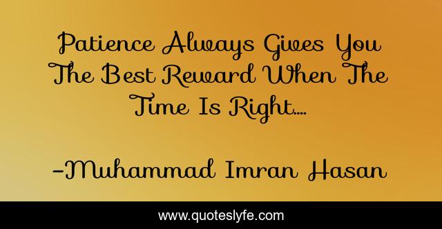 This page presents the quote "Patience Always Gives You The Best Reward When The Time Is Right....". Author of this quote is Muhammad Imran Hasan. This quote is about motivation, positive, motivational, mind, confidence, patience, waiting, optimistic, time,.
