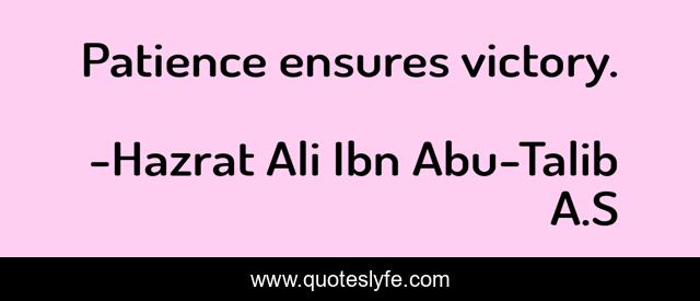 "Hazrat Ali Ibn Abu-Talib A.S Quotes." Quoteslyfe.com, 2025. Sun. 07 Dec. 2025. <https://www.quoteslyfe.com/quote/Patience-ensures-victory-4940>.