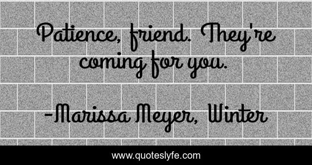 "Marissa Meyer, Winter Quotes." Quoteslyfe.com, 2025. Sat. 06 Dec. 2025. <https://www.quoteslyfe.com/quote/Patience-friend-They-re-coming-for-you-126589>.
