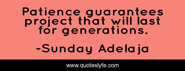 This page presents the quote "Patience guarantees project that will last for generations.". Author of this quote is Sunday Adelaja. This quote is about project, patience, generations,.