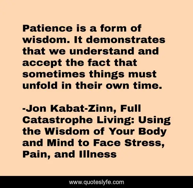"Jon Kabat-Zinn, Full Catastrophe Living: Using the Wisdom of Your Body and Mind to Face Stress, Pain, and Illness Quotes." Quoteslyfe.com, 2025. Wed. 24 Dec. 2025. <https://www.quoteslyfe.com/quote/Patience-is-a-form-of-wisdom-It-185924>.