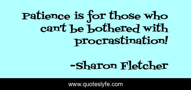 This page presents the quote "Patience is for those who can't be bothered with procrastination!". Author of this quote is Sharon Fletcher. .